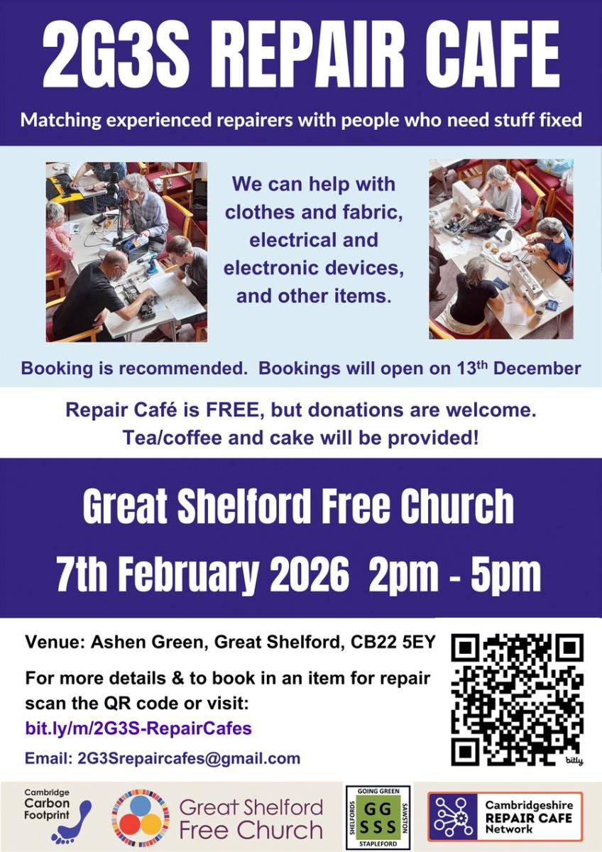 The next Repair Cafe is on 7th Feb - book now! All details on this poster.